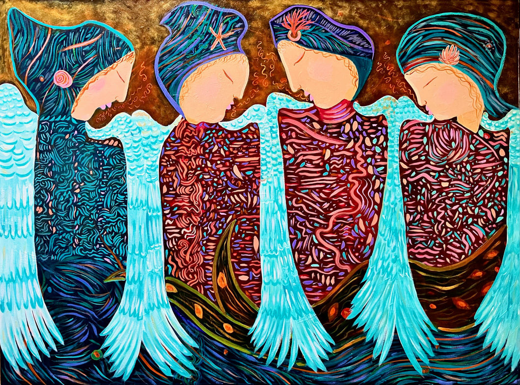 The Sirens are the gatekeepers, the guardians of indigenous Southern Italian people, culture and traditions. They are boundary protectors, oathmakers, mermaids with feathered wings, who ride the undulating waves and issue warnings to those prone to disregard the sacredness of shore line. The Sirens are bird women who sing trance inducing incantations, sweetly and incessantly calling out their prayerful chants from the rippling sea. The Sirens are deep divers who resurface carrying vital and significant messages, like nectar, from the depths. Their life purpose is to tend to the soul of the world.
